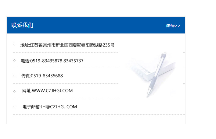 地址:常州市新北區(qū)友邦商務(wù)大廈1幢16、17層  電話:0519-85101652  傳真:0519-85112595  郵編:213022  網(wǎng)址:www.cz-jiayue_cn.047st.com  郵箱:xiajifengaa@163.com